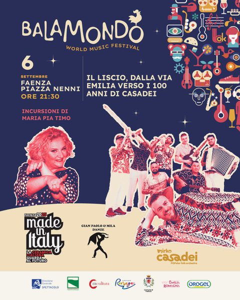 Il 6 Settembre arriva a Faenza la grande celebrazione del LISCIO!! A coronamento di un’altra, splendida ‘Estate di Raoul’, la Il 6 Settembre arriva a Faenza la grande celebrazione del LISCIO!! A coronamento di un’altra, splendida ‘Estate di Raoul’, la Mirko Casadei POPular Folk Orchestra arriva a Faenza all’interno della manifestazione Made in Italy Faenza la ceramica italiana guarda al futuro, con il Balamondo, il ‘World Music Festival’